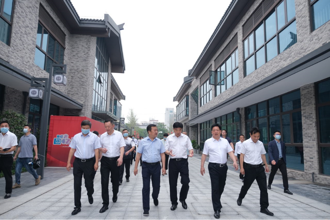段昌林一行步入荊街街區,現場(chǎng)聽(tīng)取項目建設、業(yè)態(tài)布局和招商運營(yíng)情況匯報。
