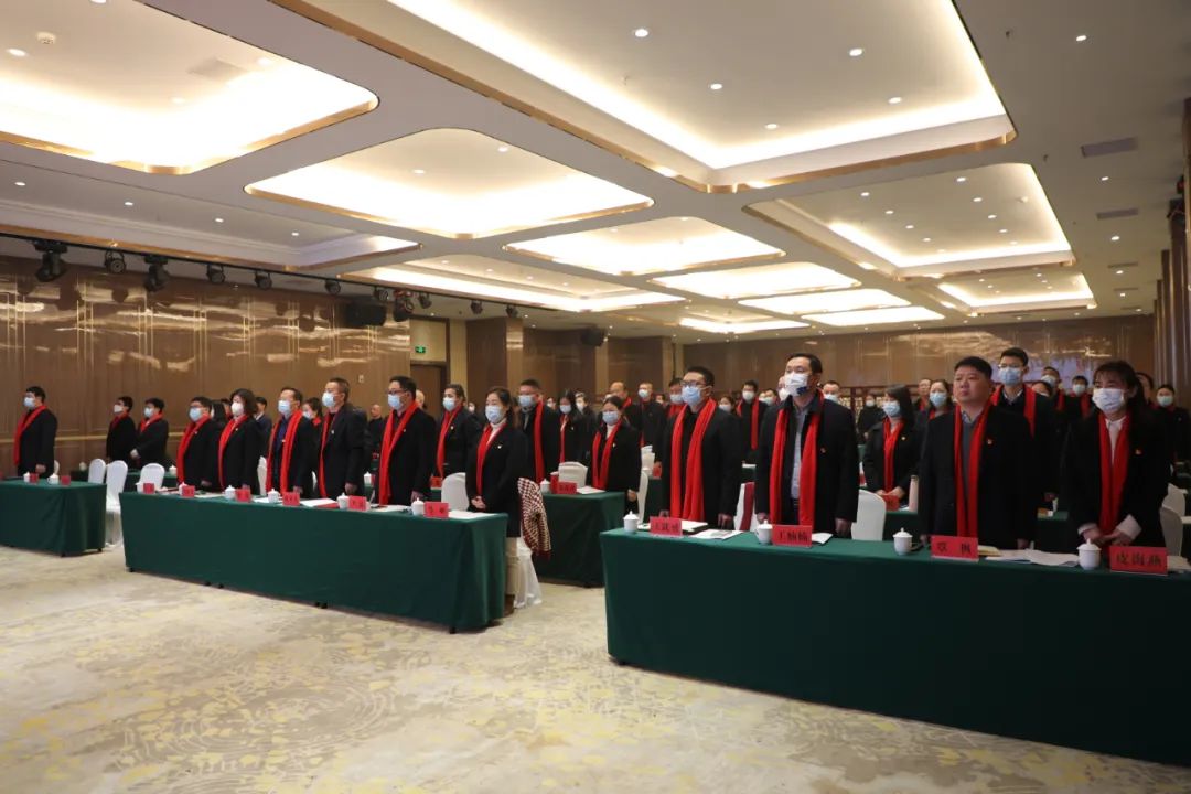大會(huì )在莊嚴的國歌聲中開(kāi)幕。新黨員宣誓,全體黨員重溫入黨誓詞。