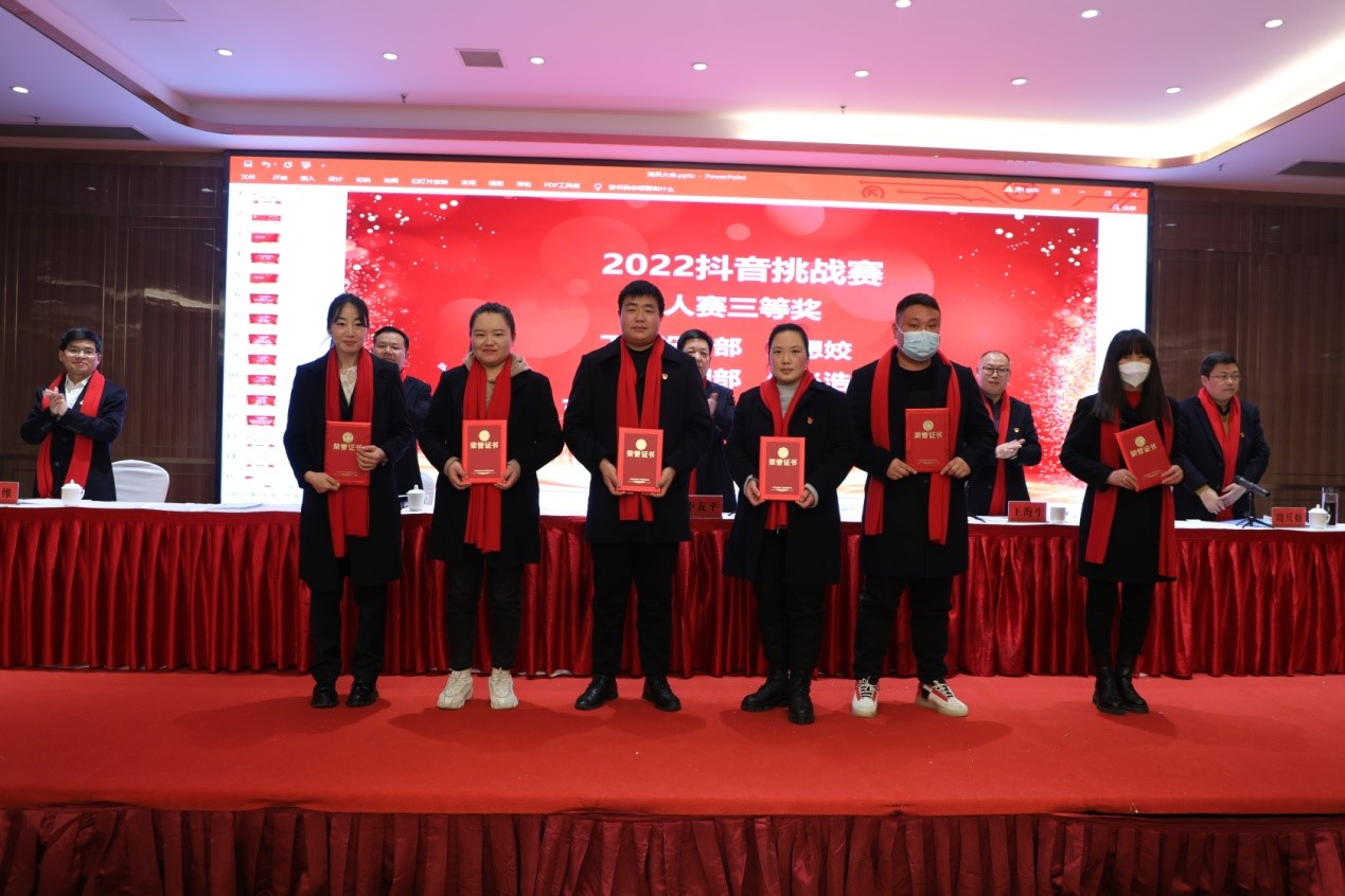 1月5日,湖北文旅荊州集團通報了2022抖音挑戰賽活動(dòng)開(kāi)展情況,共評選出團體賽一等獎1名,二等獎2名,三等獎3名;個(gè)人賽一等獎1名,二等獎2名,三等獎3名,優(yōu)秀獎20名。集團對“荊州古城旅游·搖錢(qián)樹(shù)”、“湖北文旅·荊街”、“荊旅文創(chuàng )”等先進(jìn)團體,楊寶昆、范曉燕、周霞等先進(jìn)個(gè)人進(jìn)行表彰。